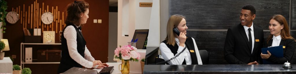Le titulaire du CS exerce les activités de réceptionniste dans les établissements assurant l’hébergement, en priorité dans les hôtels et résidences hôtelières, dans les centres d’hébergement para hôtelier (résidences médicalisées, centres de loisirs, etc.). Selon la taille de l’entreprise, son activité s’applique plus particulièrement dans les services : réservation, réception, caisse, information.