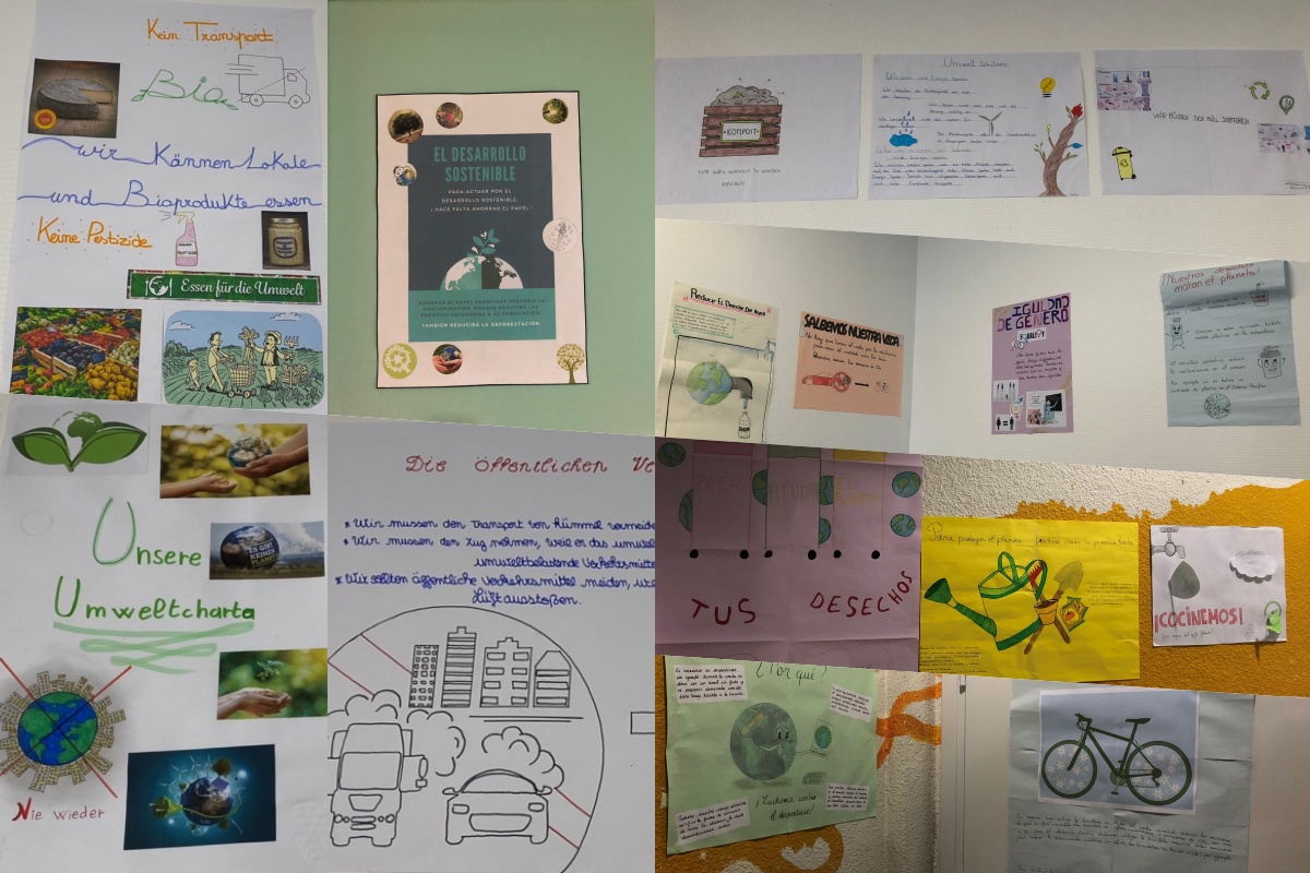 Pour sensibiliser à leur tour leurs camarades aux problématiques liées à l’économie, l’environnement, la société durables, ils ont réalisé un projet qui a donné lieu à un affichage inter-langues dans les couloirs du lycée.
