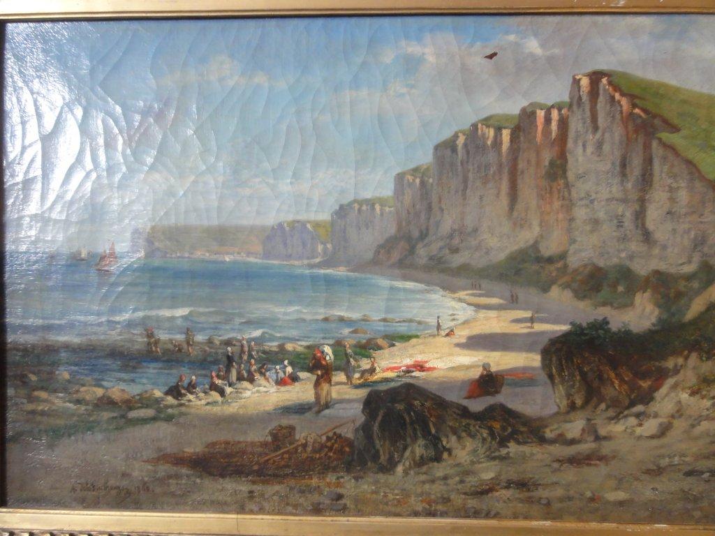 Amable de LA FOULHOUSE expose un bord de mer et ses falaises dans un cadre doré représentatif des salons du 19ième.