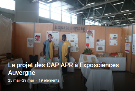 Après le repas au Moyen-Age préparé et servi par nos élèves le 28 avril, les jeunes sont venus à tout de rôle du 25 au 28 mai présenter l’ensemble de leur travail réalisé en art appliqué, anglais, sciences de l’alimentation, et microbiologie.