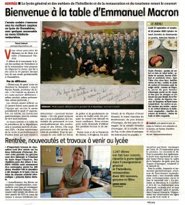 Les élèves ayant officié ce 25 janvier feront aussi partie de l’équipe qui servira le menu présidentiel le jeudi 27 septembre, en soirée, au restaurant gastronomique, pour la somme de 40 € hors boissons.