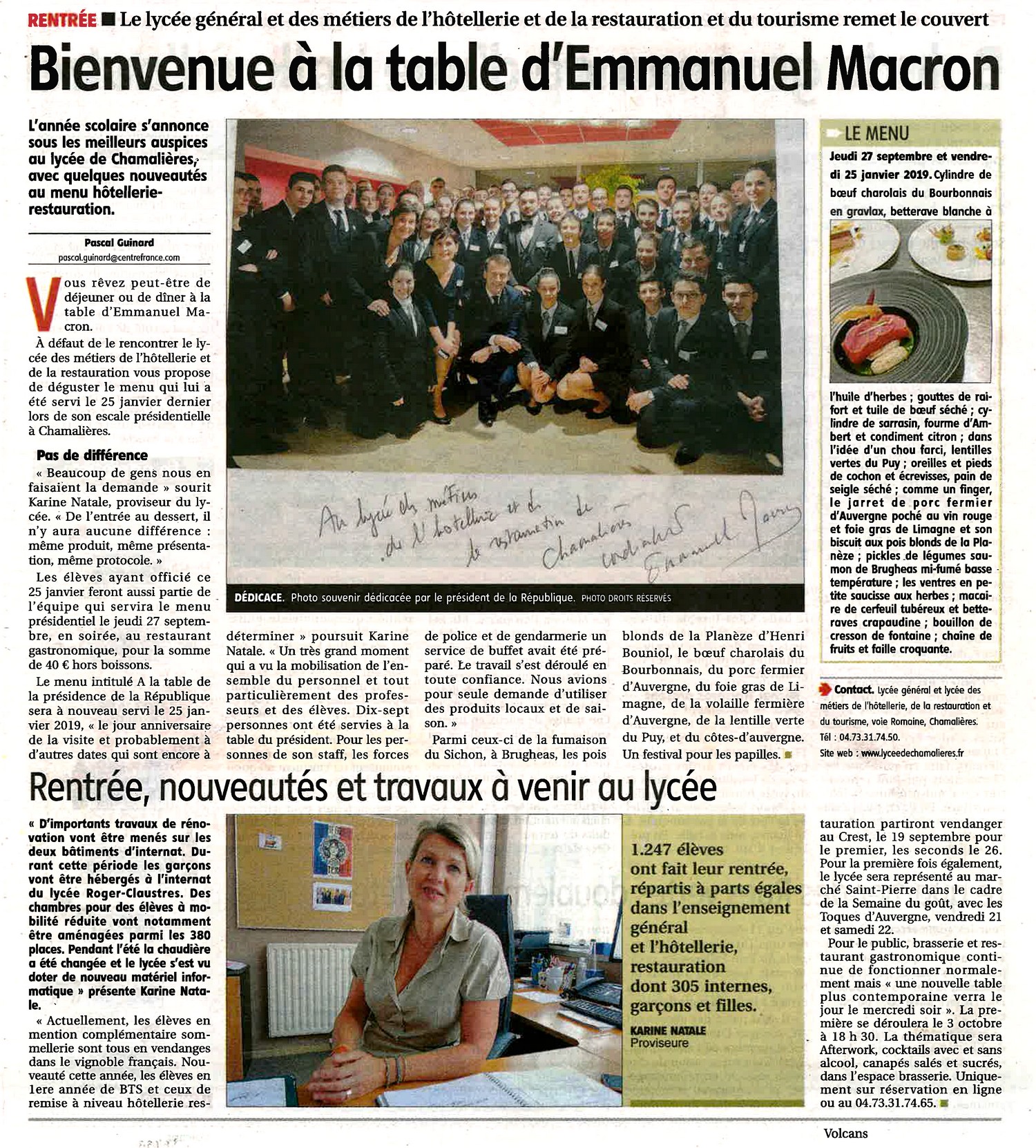 Le lycée vous convie à la table de la présidence de la République [La Montagne]
