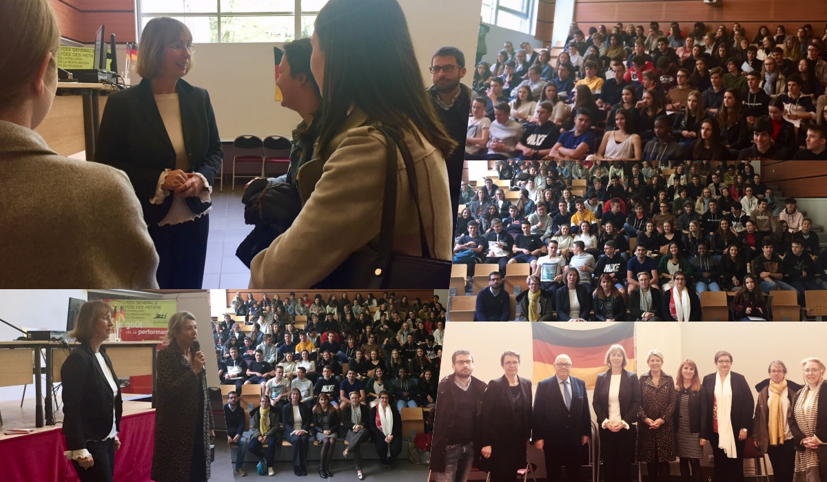 Madame la Consule a donné une conférence devant 130 élèves de Seconde, Première et Terminale en présence du professeur d’allemand Agnès Dupré et des professeurs d’histoire – géographie, Lisa Becker, Marilyne Dewavrin-Farry, Arlette Maquet et Vincent Faisandier.